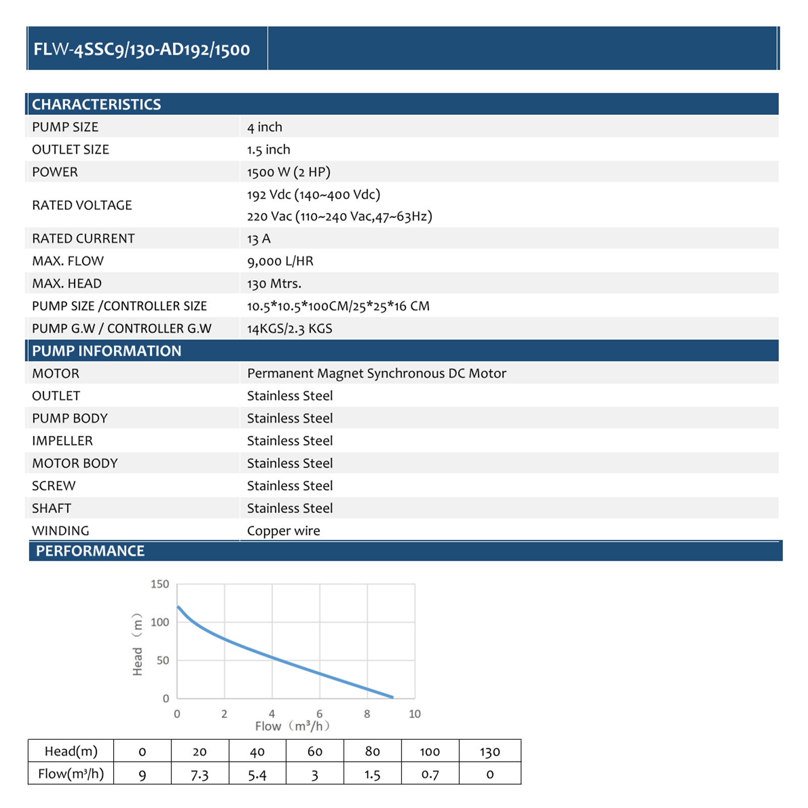 1. 4Inch Solar Well Pump With 1.5"Outlet, 1500W (2Hp) AC/DC Hybrid Solar Well Pump