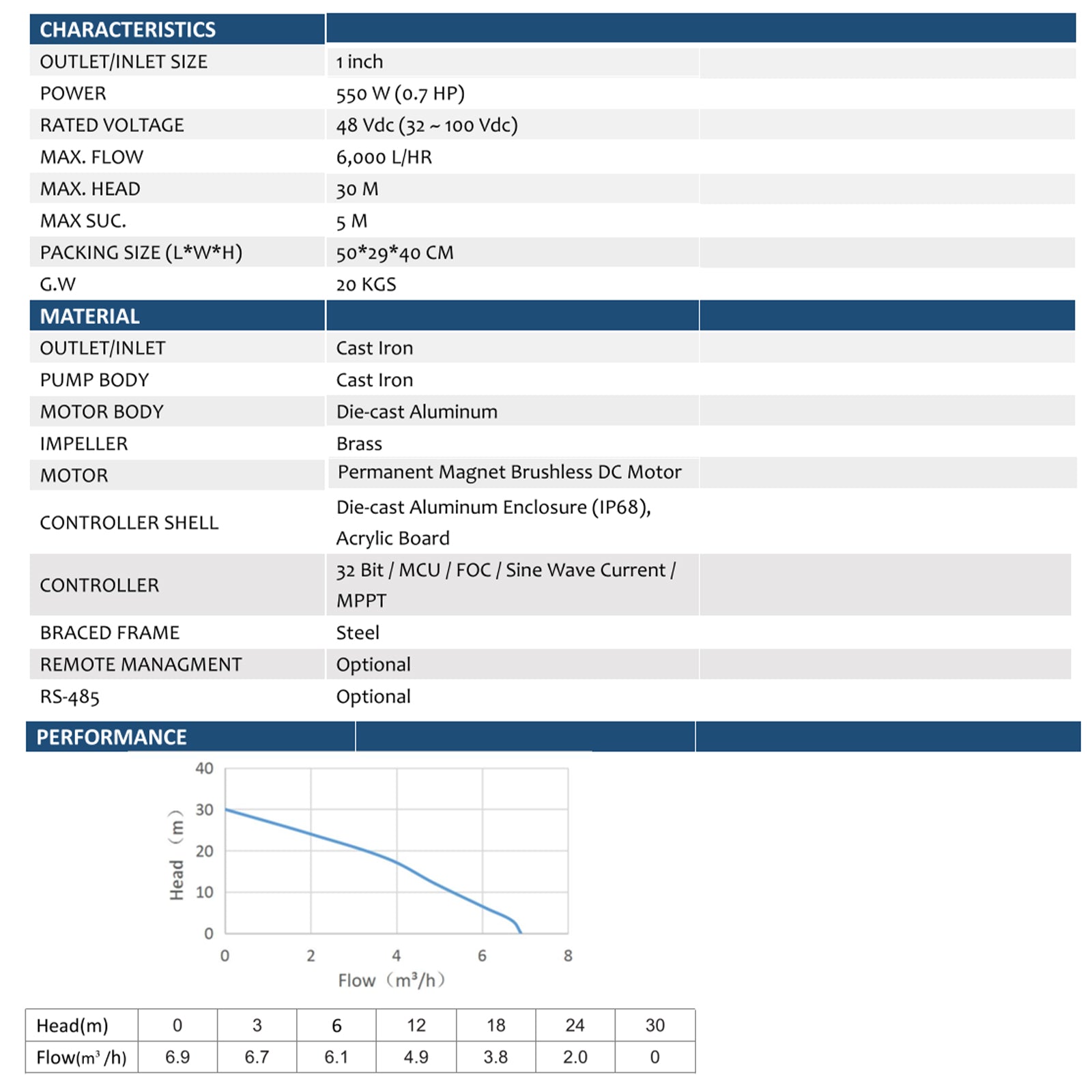 1. DC Solar Surface Water Pump With 1Inch Inlet/Outlet, 550W(0.7Hp), Ideal For Rivers, Ponds, And Farm Irrigation