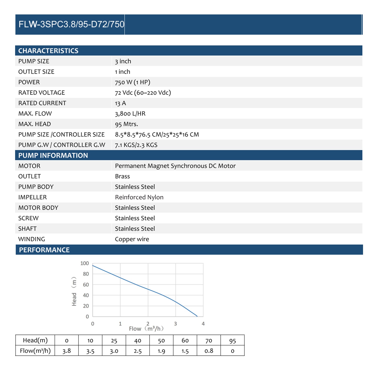 95 m hohe Förderhöhe, 3-Zoll-Pumpe, ideal für Tiefbrunnenanwendungen
